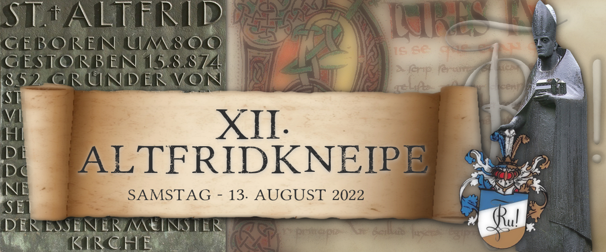ESSEN. Dass für Samstag, 13. August 2022, wieder nach Essen zur Altfridkneipe geladen wird, ist den Eingeweihten und Informierten soweit natürlich bekannt. Der offiziellen Zählung nach ist sie die Nummer XII., doch tatsächlich wurde die Übung zu Ehren des Gründers von Stadt und Stift bereits 2008 aufgenommen. Erneut schlägt die Ruhr-Unitas damit einen Bogen in den Norden, wo Altfrid vor 1150 Jahren, am 1. November 872, den berühmten Dom zu Hildesheim weihte, eine der ältesten Bischofskirchen Deutschlands.