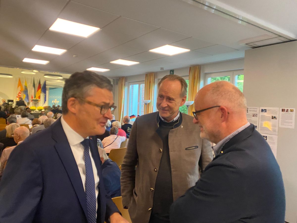 „Ich grüße an dieser Stelle ganz besonders meine unitarischen Bundesbrüder!“, hatte Roderich Kiesewetter ganz zum Eingang seines rund einstündigen frei gehaltenen Vortrags vor dem großen Auditorium erklärt - und das mag viele Gäste überrascht haben. Viele Mitglieder des Essener Unitas-Zirkels waren im saalfüllenden Publikum, Bernd Genser und Dr. Christof Beckmann überbrachten als Vertreter der Altherrenschaft die Grüße der Ruhr-Unitas. Im angeregten Gespräch erkundigte er sich bereits vor Beginn der Festveranstaltung sehr offen und zugänglich nach dem unitarischen Leben im Ruhrgebiet, nach beruflichen Hintergründen und Erfahrungen: „Ich bin froh und freue mich sehr, dass ihr heute da seid.“