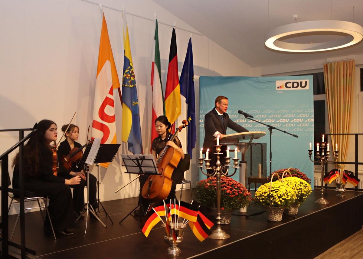 ESSEN. Man warf ihm viel vor in diesen Wochen, man stellte ihn als „Kriegstreiber“ an den Pranger, er wurde körperlich angegriffen. Doch Bbr. Roderich Kiesewetter MdB, Jahrgang 1963 und seit 2009 direkt gewählter Bundestagsabgeordneter für den Wahlkreis Aalen-Heidenheim, steht zu seinen Überzeugungen. Der studierte Wirtschaftswissenschaftler und Diplomkaufmann verließ 2009 die Bundeswehr als Oberst im Generalstab - nach vielen Stationen im Heer, im Verteidigungsministerium, bei der EU in Brüssel, im NATO-Hauptquartier in Mons und nach Einsätzen auf dem Balkan. Wenn er damit zu Fragen von Krieg und Frieden spricht, tut er das aus intensiver persönlicher Erfahrung. Zudem schaut er als Obmann im Auswärtigen Ausschuss, stv. Vorsitzender des Parlamentarischen Kontrollgremiums und anderen parlamentarischen Gremien mit vielen internationalen Verbindungen mit großer Expertise auf die geostrategischen und außenpolitischen Herausforderungen der Zeit. Und am Samstag, 5. Oktober, war der in vielen Talkrunden und Sendungen präsente Außen- und Sicherheitspolitiker der CDU Festredner beim Tag der Deutschen Einheit, der seit vielen Jahren von der CDU Kupferdreh/Byfang ausgerichtet wird.