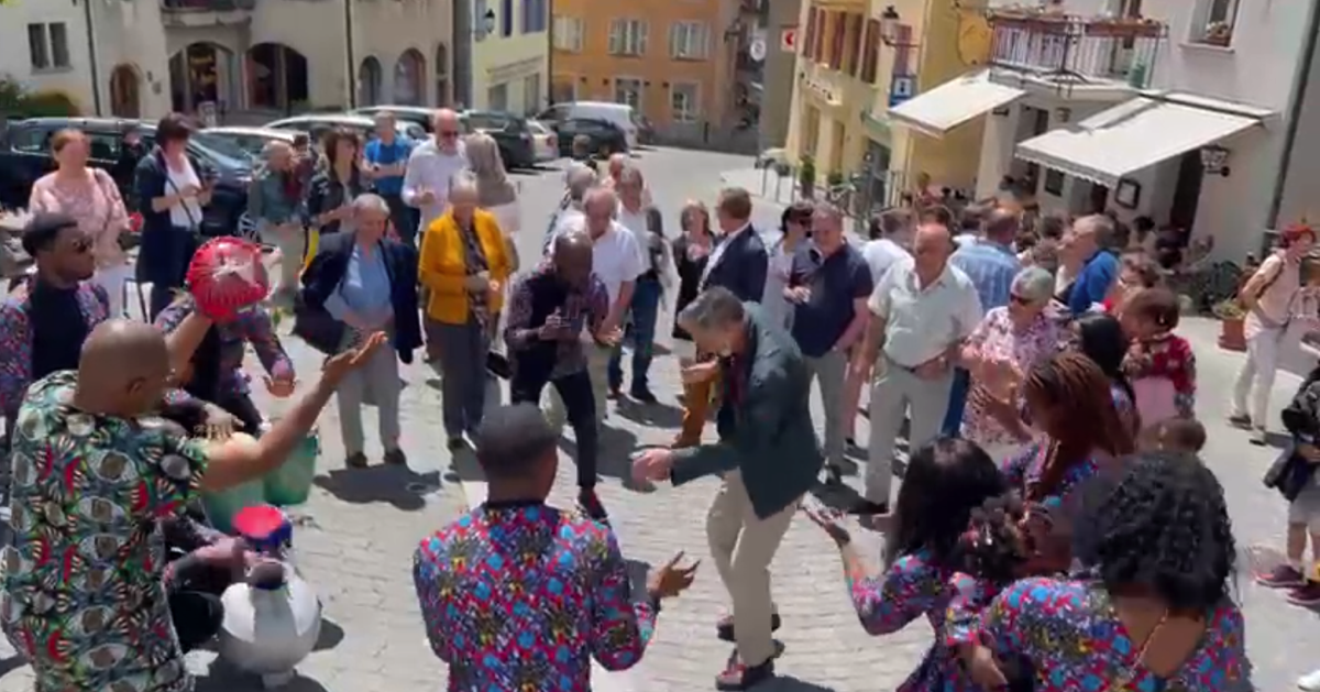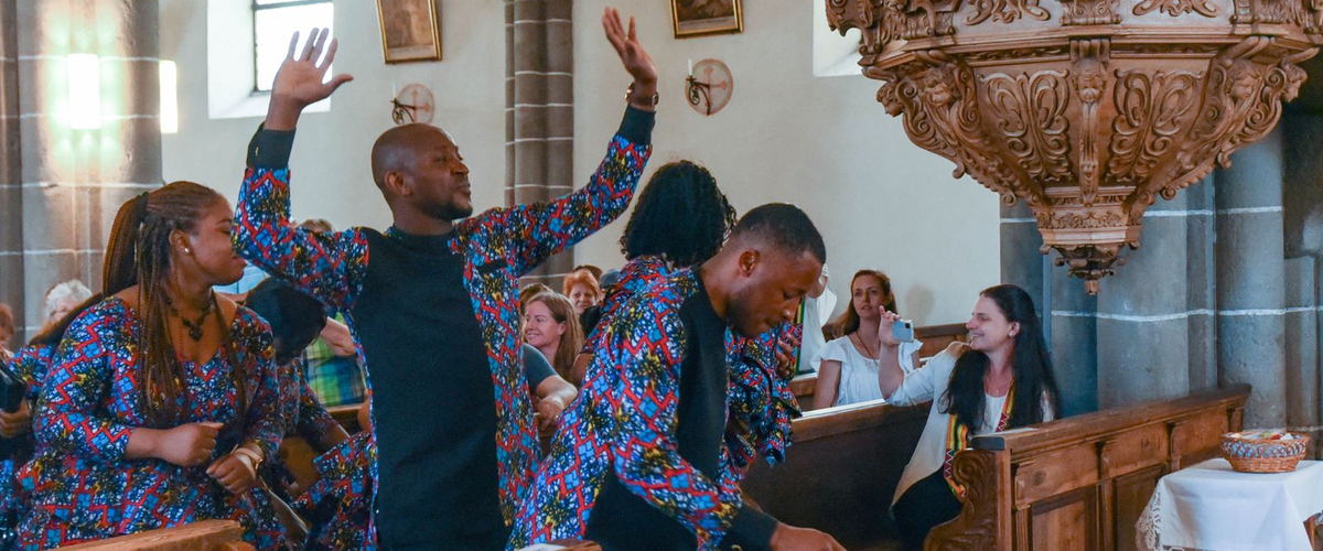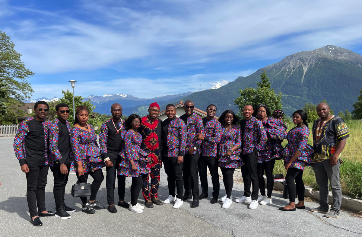 Und genau dort drehte jetzt auch die 12-köpfige Chorauswahl von Charles Onyeke ihre Runden. Alle gehören dem von Charles geleiteten Chor der „St. Gertrud African Catholic Voices“ aus der afrikanischen Gemeinde in Essen an, die 2019 vor großem Fernsehpublikum die Stadt Essen in der Endauswahl des größten Chor-Wettbewerbs von Nordrhein-Westfalen vertraten. Jetzt stand der hingebungsvolle „Conductor“ auch in der Schweiz am Keyboard. Und ganz offensichtlich war die dort feiernde Gemeinde von Messe, Predigt und den 18 leidenschaftlichen musikalischen Beiträgen begeistert, so die Zeitung: „Nach eineinhalb Stunden nähert sich die Messe dem Ende“, schreibt der Walliser Bote: „Die Sustner klatschten laut mit, brachten tanzend und lachend ihre Opfergaben zu den Kollekten. Immer wieder wurden Handys hochgehalten, um die besondere Stimmung des Gottesdienstes festzuhalten. Nun tun es immer mehr dem Chor gleich, heben die Hände und bewegen sich.“