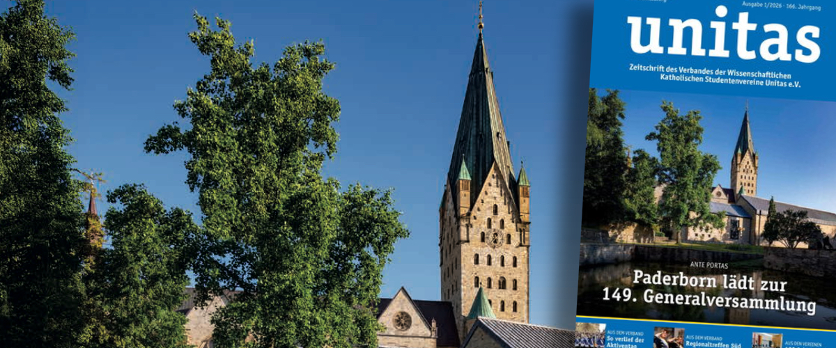 Bei den meisten Mitgliedern dürfte sie wohl inzwischen im Briefkasten stecken: Schwerpunkt der neuen Unitas-Ausgabe, der ersten des 166. Jahrgangs, ist die anstehende 149. Generalversammlung (GV) des Verbandes der Wissenschaftlichen Katholischen Studentenvereine Unitas. Sie steht unter dem Motto „Werte – Wille – Wandel“ und tagt von Freitag, 8. Mai, bis Sonntag, 10. Mai 2026 in Paderborn. Die Universitäts- und Bistumsstadt ist nach der 53. GV 1912 und der 116. GV 1993 zum dritten Mal Austragungsort des Bundestreffens.
