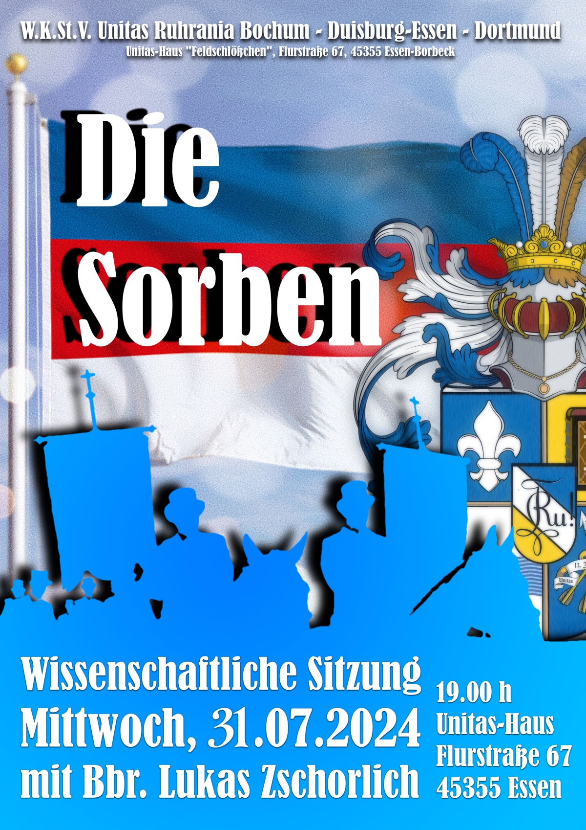 Allen weiteren, die noch nicht Bescheid wussten und sich für heute den Abend zu Kultur und Geschichte einer manchem unbekannten deutschen Landschaft vielleicht vorgenommen hatten, dies also zur Kenntnis. Referent Bbr. Lukas Zschorlich startet am Mittwoch, 31. Juli, um 19 Uhr c.t., auf dem Unitas-Haus „Feldschlößchen“.