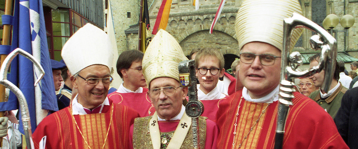 Bild: Vor 25 Jahren, am 21. September 1996, empfingen Erzbischof Reinhard Kardinal Marx (r.) und Bischof Heinz Josef Algermissen (l.) in einer gemeinsamen Weihezeremonie im Paderborner Dom die Bischofsweihe. Der damalige Paderborner Erzbischof, Erzbischof Dr. Johannes Joachim Degenhardt, spendete die Weihe.