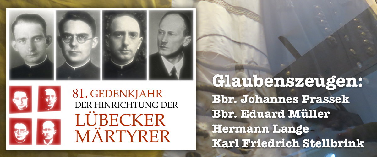 ESSEN. Am 10. November 1943, 18 Uhr, wurden Bbr. Johannes Prassek, Hermann Lange, Bbr. Eduard Müller und Karl Friedrich Stellbrink von der Nazi-Justiz dem Henker vorgeführt und im Hamburger Gefängnis Holstenglacis im Dreiminutentakt enthauptet. Im Gedenken an ihren Widerstand und ihr christliches Glaubenszeugnis werden auch in diesem Jahr zwischen Lübeck und Hamburg, Osnabrück und Leer wieder Gottesdienste und Andachten gefeiert, Konzerte, Lesungen und Rundgänge stattfinden, die auf der Homepage zu den Lübecker Märtyrern verzeichnet sind.