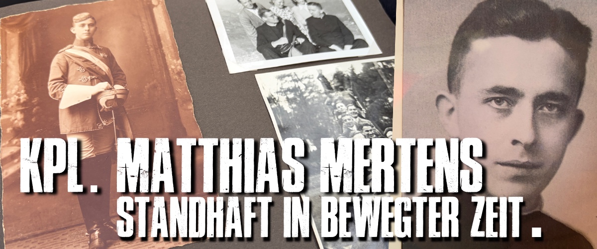 Trotz dreimonatiger „Schutzhaft“ blieb er darin ungebrochen. Dabei zog er seine Kraft aus der Familie, dem Glauben und dem Widerstand in seiner Umgebung, skizziert das lesenswerte 32-seitige Begleitheft zur Ausstellung. Das illustriert seine Deportation mit dem Viehwaggon ins KZ Dachau, bei der seine Unterstützer offen Gesicht zeigten: „Zahlreiche Mitglieder der Schmachtendorfer Gemeinde und enge Freunde versammelten sich am Bahnhof, um ihrem Kaplan beizustehen.“ Was ihn im dortigen Pfarrerblock erwartete, in dem er zahlreiche Kurskollegen und auch den ihm aus Materborn bekannten Karl Leisner wiedersehen sollte, war ein „System der Unmenschlichkeit“ und „Modell des Terrors“: Zwangsarbeit, Hunger, Krankheit, Isolation, Gewalt und Bestrafung, Erniedrigung und Mord – all dies konnte durch die dokumentierten Briefe kaum nach außen offen berichtet werden. Auch nicht, dass man seinem Freund Karl Leisner im KZ selbst in aller Heimlichkeit die Priesterweihe spendete – ein Akt des Widerstands, der drei weitere Mitglieder der Unitas auf den selbstgefertigten Erinnerungsbildchen verzeichnet. Mertens besuchte den bereits vom Tod gezeichneten Leisner nach seiner Entlassung 1945 als erster im Sanatorium – es wurde ihr letztes Wiedersehen.