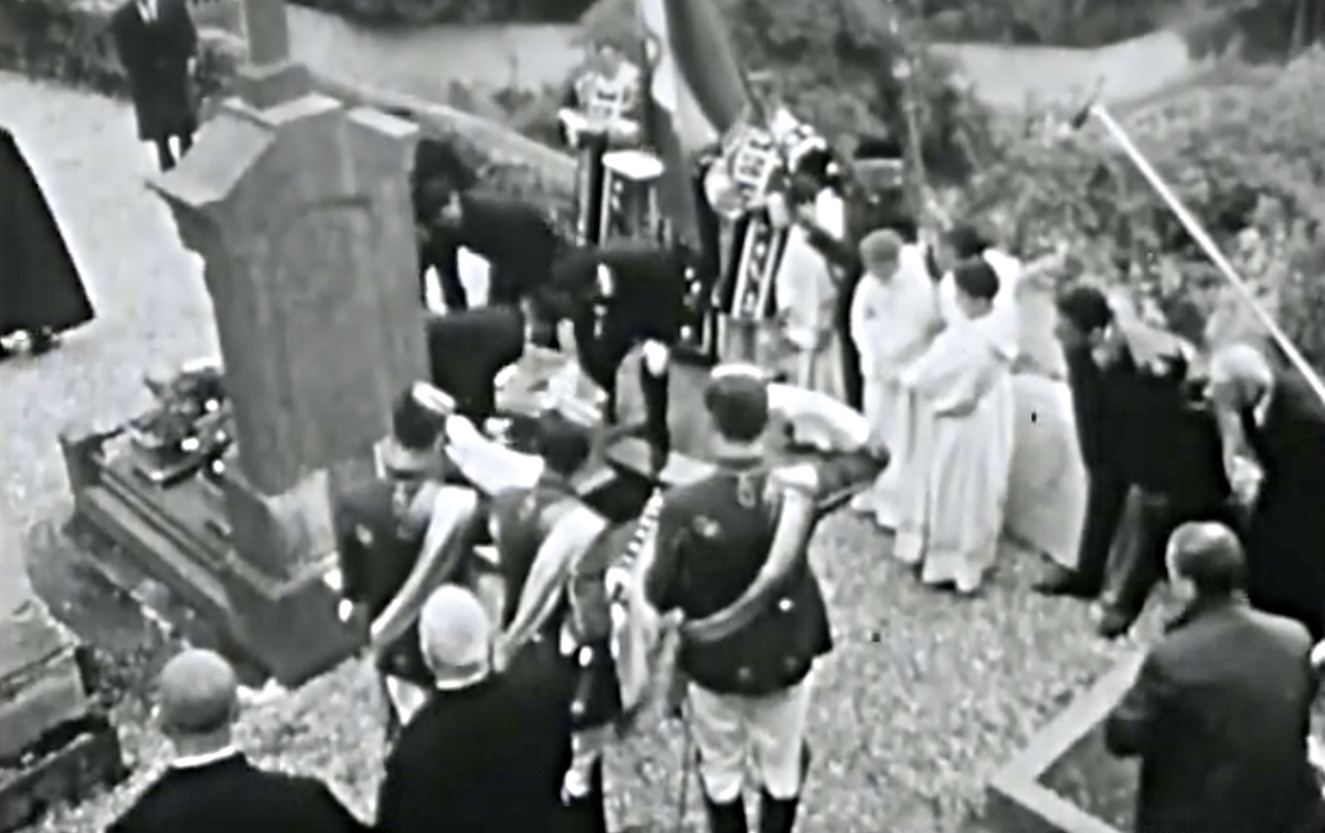 Nur die Fahne der französischen Resistance und der Unitas durften dem Sarg folgen: Chargen der Bonner Unitas bei der Bestattung von Bbr. Robert Schuman in Scy-Chazelles im September 1963.