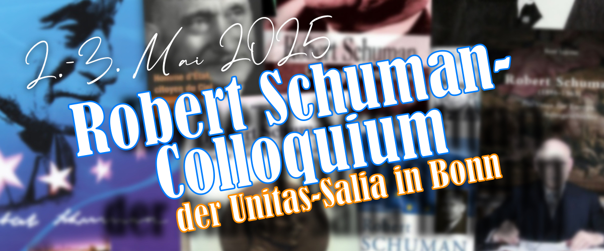 Mit diesem Ziel, aber auch, um das Lebenswerk ihres Bundesbruders Robert Schuman zu ehren, wird die Unitas-Salia Anfang Mai 2025 ein erstes „Robert-Schuman-Colloquium“ durchführen. Veranstaltungsort ist die Villa Victoria, das Haus der Unitas-Salia (Luisenstraße 36, 53129 Bonn).“