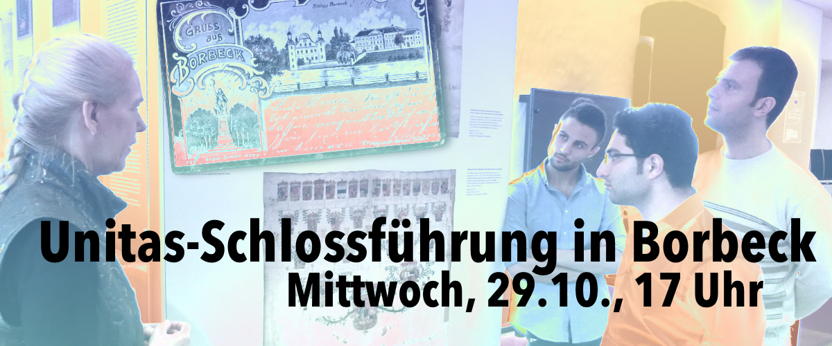 Um 17.00 hst ist Treffpunkt vor Schloss Borbeck, anschließend wird auf dem Unitas-Haus eine geeignete Nachbearbeitung des Erlebten stattfinden.