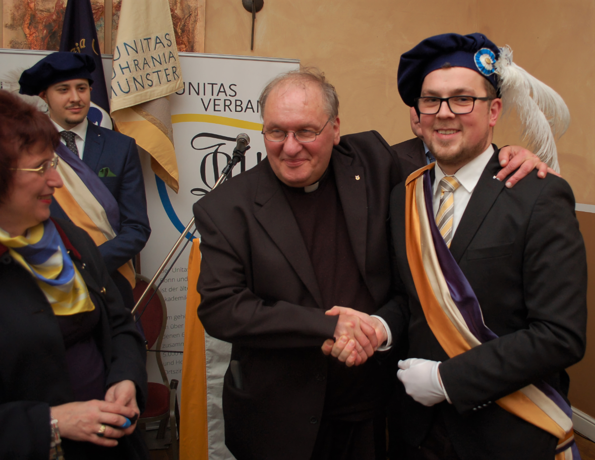Bei der 137. Generalversammlung des Unitas-Verbandes 2014 in Bamberg übergab Bbr. Pastor Helmut Wiechmann nach über 12 Jahren sein Amt an Bbr. Pfr. Stefan Wingen und legte der unitarischen Familie in der Verbandsmesse besonders die Seligpreisungen aus dem Neuen Testament ans Herz. Beim Festkommers zeichnete Verbandsgeschäftsführer Bbr. Torsten Waibel den aus dem Amt scheidenden Verbandsseelsorger mit der Silbernen Verbandsnadel aus.
