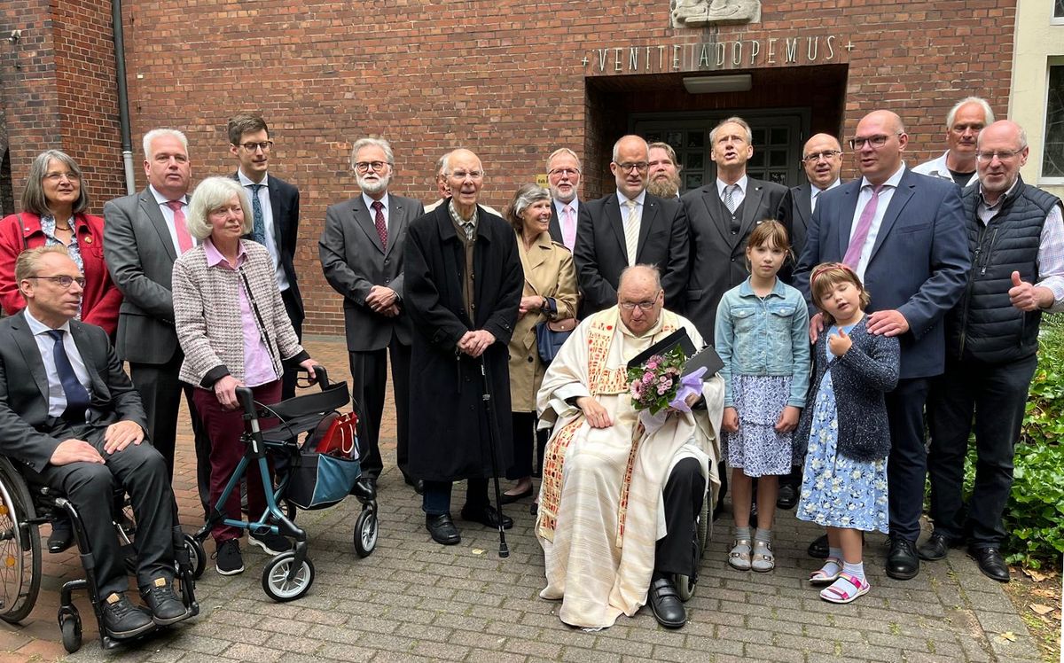 ALTENESSEN. Ein ganz spezielles Vereinsfest St. Bonifatius 2025 gab es am 15. Juni bei der Ruhr-Unitas: Zum Silbernen Priesterjubiläum von Bbr. Pastor em. Helmut Wiechmann feierte die unitarische Familie in großer Gemeinschaft der Pfarrgemeinde die Messe diesmal in Altenessen. Kurz: Die Kirche St. Johann Baptist war voll, Pfarrer Ingo Mattauch konzelebrierte, das Festgeleit sah Vertreter von Kath. Knappenverein, Eucharistischer Ehrengarde, Unitas-Ruhrania und KAV Capitolina zu Rom im CV. Mit der feierlichen Neurezipierung von Rechtsanwalt Ralf Bockstedte in der Messe vor dem Schlusssegen gab es zudem eine Premiere - mit viel Applaus.