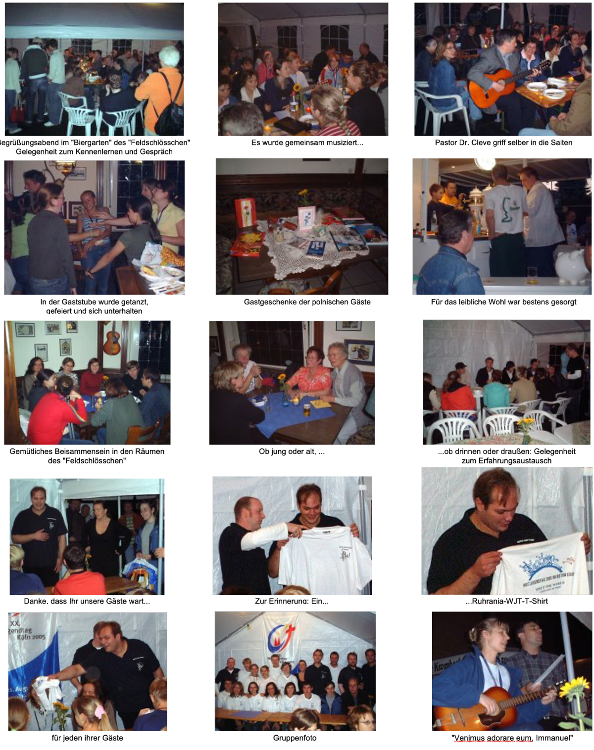 Was vor 20 Jahren – inzwischen immerhin vor 40 Semestern – die Gemüter bewegte, sollte einen Schub auslösen, der lange erhalten blieb. Doch in den Tagen damals war das Projekt mit einer Menge Schweiß verbunden: „Statt im sanierungsbedürftigen Gemäuer abzureißen, bettelten die Aktiven überall erst einmal vor den „Tagen der Begegnung“ nicht nur Getränke und anderes Nützliches zusammen, sondern fuhren auch beim Baumarkt vor. Und kehrten zurück mit ordentlichem Teppichboden – weil der Ruhrpott sich in Sachen Gastfreundschaft nicht lumpen lässt, zahlten sie keinen Cent“, war anschließend in der UNITAS 2/3 2005 zu lesen: „Der Biergarten wurde „blatt- und staubfrei“ gemeldet, das ganze Haus auf Vordermann gebracht. Denn schließlich erwartete man Gäste: Nicht nur zwölf Pilger aus Gleiwitz und Zabrze/Hindenburg in Oberschlesien, die im Obergeschoss ein perfektes Lager bezogen, sondern die gesamten Pfarrgemeinden St. Dionysius und St. Maria Immakulata mit allen 81 WJT-Gästen aus Polen, Nazareth und Ungarn.“