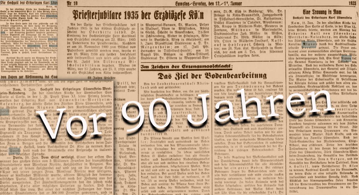 Als am 7. Januar 1935 Unitas-Verbandsführer Karl Erbprinz zu Löwenstein-Wertheim-Rosenberg in der Kirche der Lombarden in Rom die italienische Gräfin Carolina dei Conti Rignon heiratet, gilt das als katholische Demonstration. Nicht nur für Rom ist die Hochzeit ein gesellschaftliches Ereignis: Zu den zahlreichen prominenten Gästen zählen die Spitzen der römischen Aristokratie, das italienische Kronprinzenpaar und der Großmeister des Malteserordens. Die im In- und Ausland viel beachtete Trauung vollzieht Kardinalstaatssekretär Eugenio Pacelli, 1917-1929 Apostolischer Nuntius im Deutschen Reich, der am 2. März 1939 zum Papst gewählt wird und den Namen Pius XII. annimmt. Doch die Zeichen in der Heimat stehen auf Sturm.