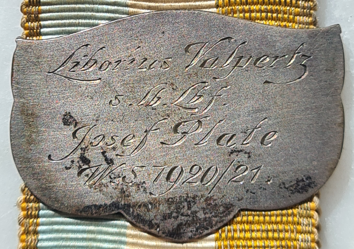 So auch in diesem Fall, der Ausgang für diese Untersuchung wurde: Denn am Nikolaustag des Jahres 2025 erreichte die Unitas Ruhrania ein 105 Jahre altes Zeugnis lebendigen Vereinslebens, das bis in das erste Jahrzehnt der studentischen Gemeinschaft zurückreicht. Anfang September 2025 hatte Dirk Holtkamp aus Harsewinkel dazu ersten Kontakt mit dem AHV aufgenommen: Im Nachlass des Großonkels seiner Frau fand sich ein Bierzipfel, der im WS 1920/21 von dem damaligen Student Josef Plate getauscht wurde. Der mit in den Unitas-Farben blau-weiß-gold versehene schlichte Zipfel mit schön geschwungenem Ruhranen-Zirkel trägt die Gravur „Liborius Valpertz s. lb. Lbf. Josef Plate WS 1920/21“.