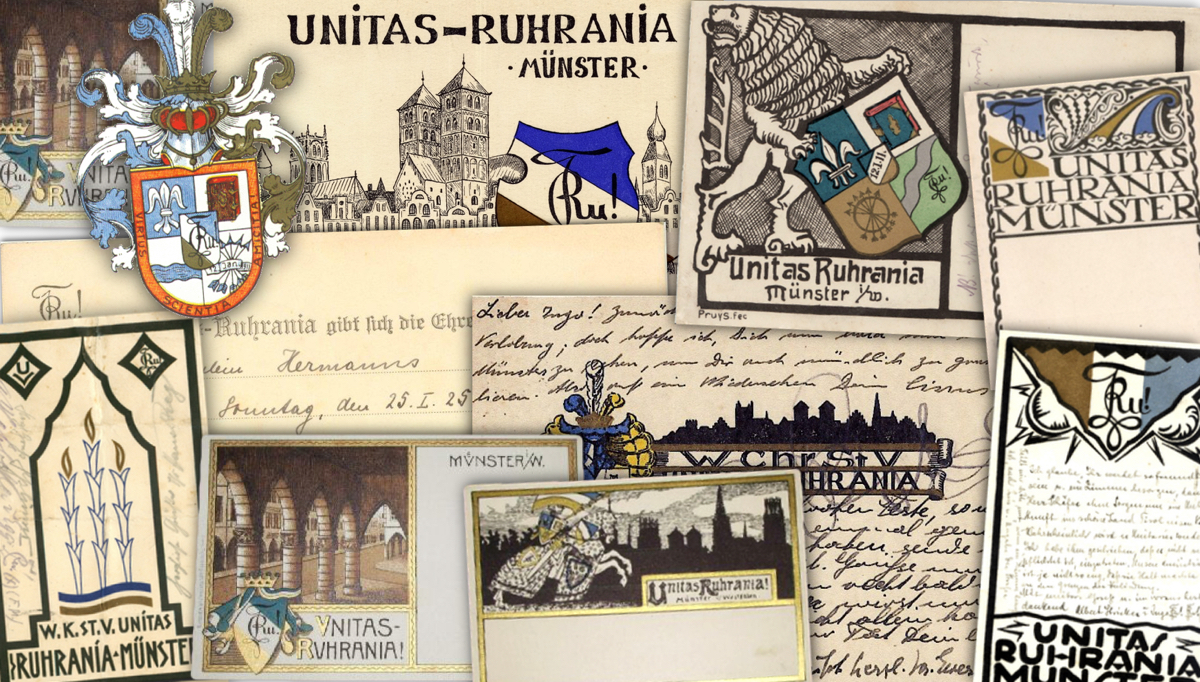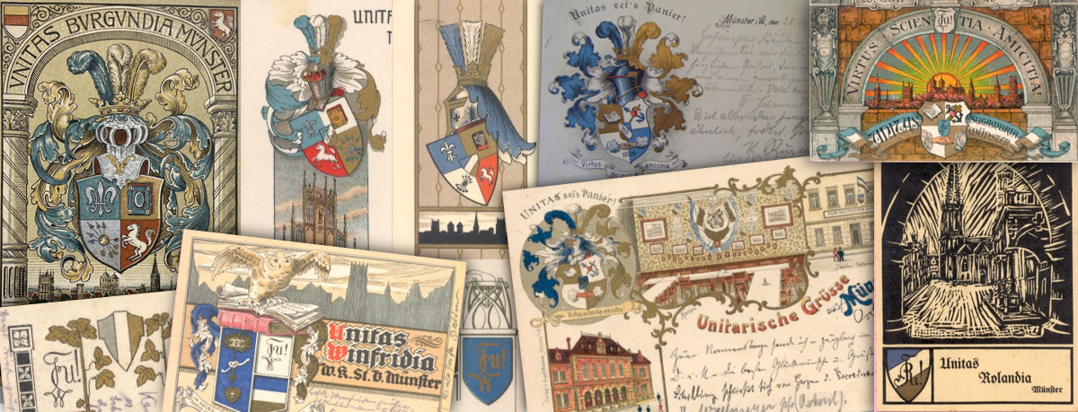 Bild unten: Couleurpostkarten von Unitas-Vereinen in Münster