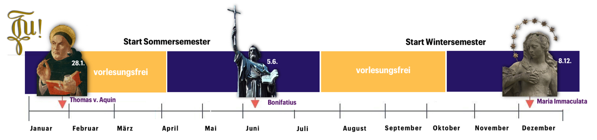 - 28. Januar: Der vor fast 800 Jahren geborene italienische Dominikanermönch Thomas von Aquin (1225-1274), der bedeutendste Philosoph und Theologe des Hochmittelalters, spielte in seiner intellektuellen Fülle als Kirchenlehrer, Theologe und Philosoph nicht nur in den weltanschaulichen Auseinandersetzungen des 19. Jahrhundert eine außerordentlich bedeutende Rolle. Die seinem Leitbild seines Ordens entsprechende Suche nach Wahrheit – veritas - trifft das verpflichtende Wissenschaftsprinzip der Unitas.
