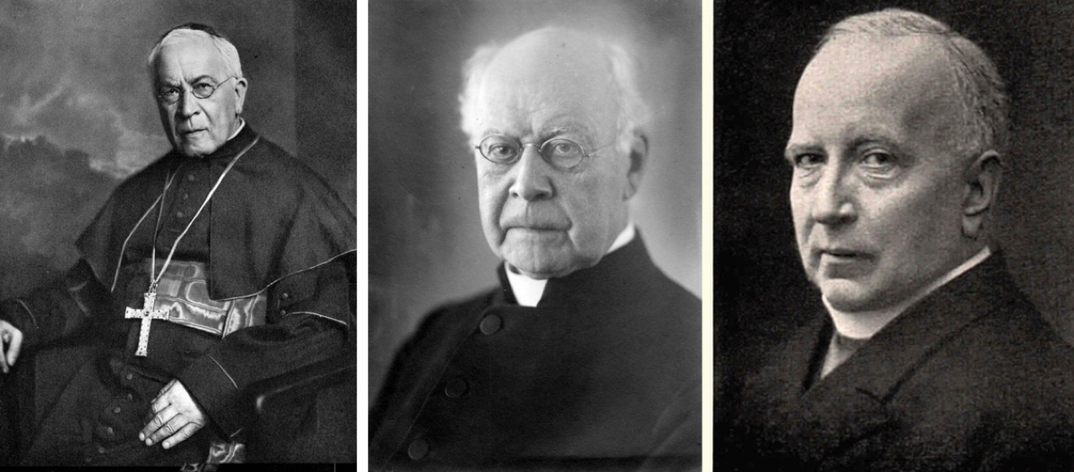 Bundesbrüder: (v.l.) Der Kölner Erzbischof Antonius Kardinal Fischer, Prälat Joseph Prill, Prälat Prof. Albert Lauscher MdR (Zentrum)